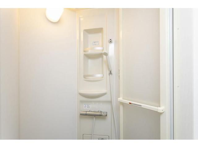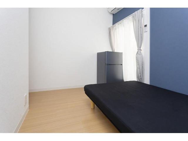 ベッド、エアコン、机、椅子、冷蔵庫、電源、TVジャック、クローゼット、洗濯物干し、等。